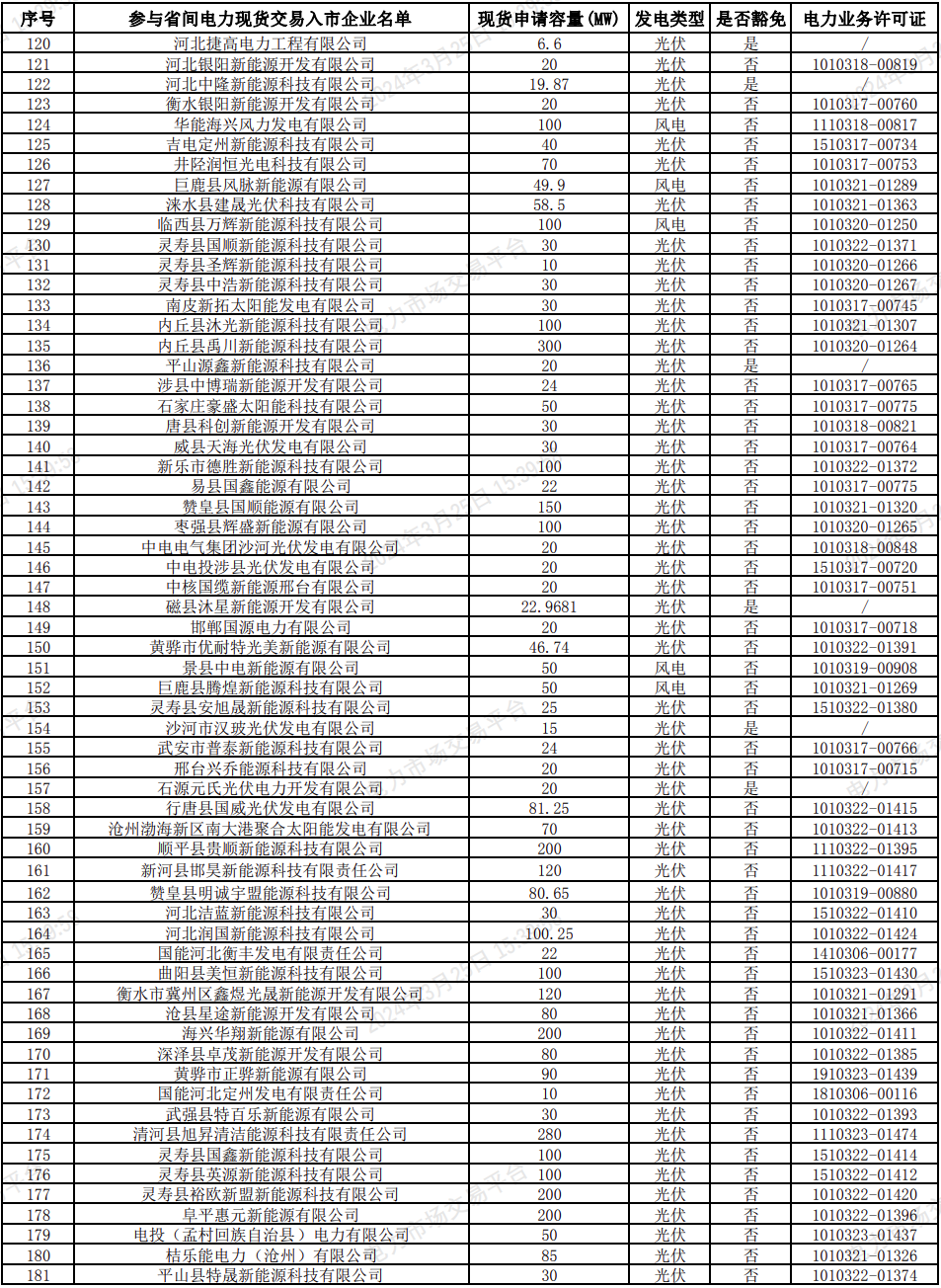 近日,河北電力交易中心發(fā)布河北南網(wǎng)新能源參與省間電力現貨市場(chǎng)入市名單(截至2024年3月22日),詳情如下: