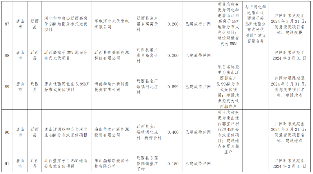 為進(jìn)一步加強風(fēng)電、光伏項目管理,我委組織相關(guān)市對參與四季度風(fēng)光集中并網(wǎng)行動(dòng),且2023年底已到期的集中式風(fēng)電、光伏項目研究提出了處置意見(jiàn),對2023年地面分布式光伏項目進(jìn)行了驗收。結合相關(guān)市處置意見(jiàn)和驗收意見(jiàn),考慮大雪等極端天氣因素影響,研究提出了項目調整意見(jiàn),現予以公示。具體項目名單及調整意見(jiàn)見(jiàn)附件。