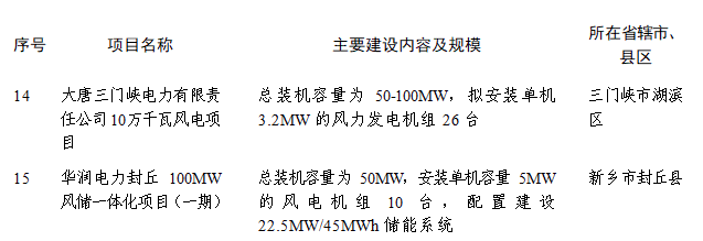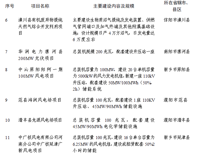 新能源項目具體名單: