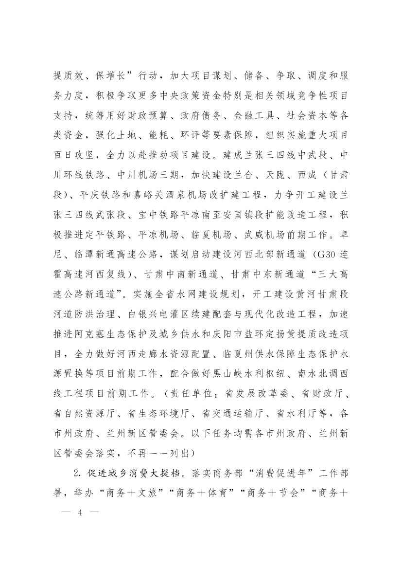 3月19日,甘肅省人民政府發(fā)布《甘肅省人民政府辦公廳關(guān)于印發(fā)全面貫徹落實(shí)省委經(jīng)濟工作會(huì )議和省兩會(huì )精神聚焦聚力打好高質(zhì)量發(fā)展“六場(chǎng)戰役”行動(dòng)方案的通知》。